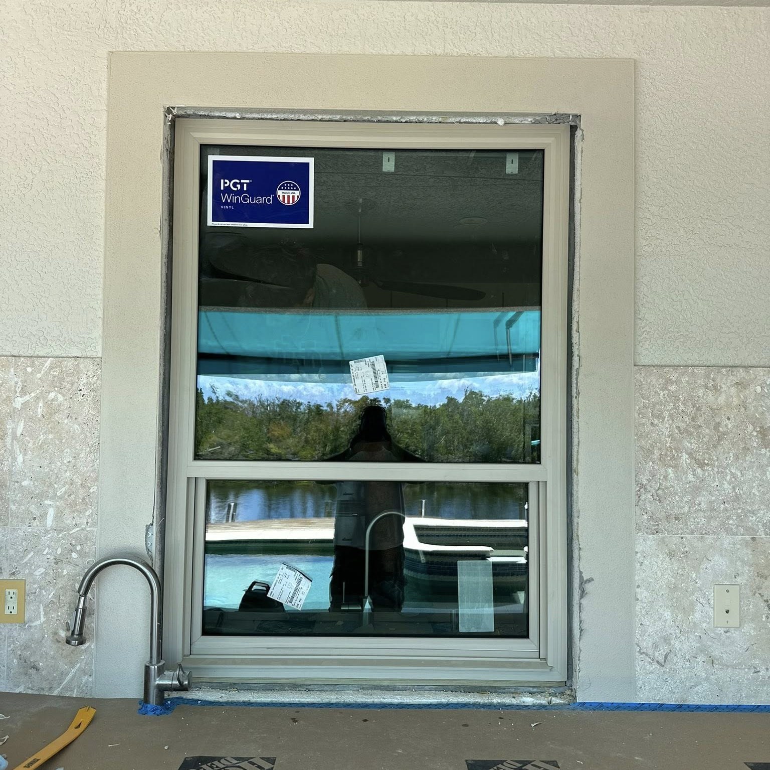 PGT Single Hung Insulated Impact Window with Special Sash Height for expanded view of waterway